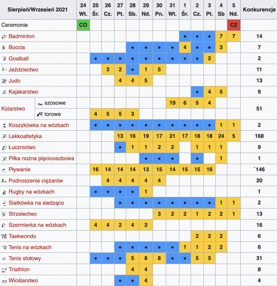Kalendarz Prnw Igrzyska Paraolimpijskie Tokio 2021